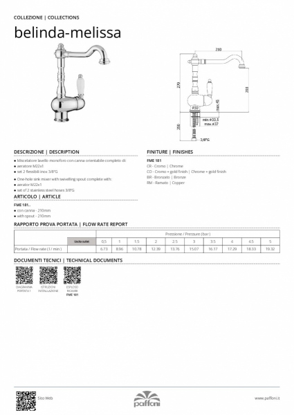 Bateria kuchenna Paffoni Belinda FME181RM miedź szczotkowana
