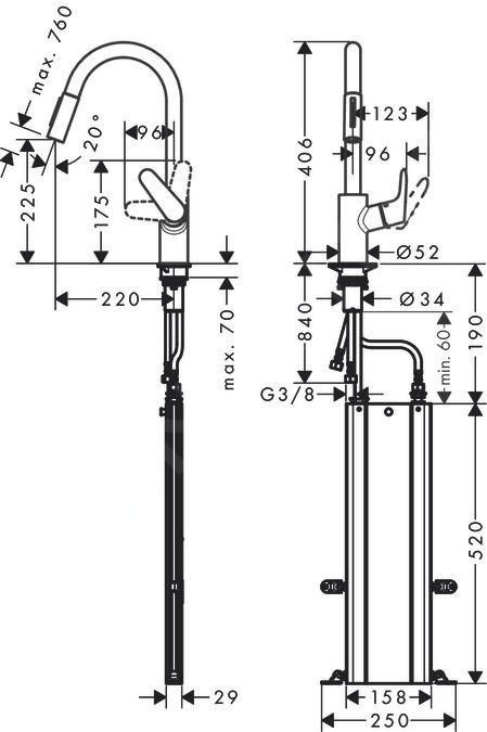Focus M41 Jednouchwytowa bateria kuchenna 240 EcoSmart wyci?gana wylewka 2jet sBox chrom