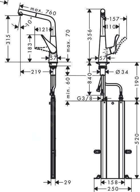 Metris M71 Jednouchwytowa bateria kuchenna 320 EcoSmart wyci?gana wylewka 1jet sBox chrom