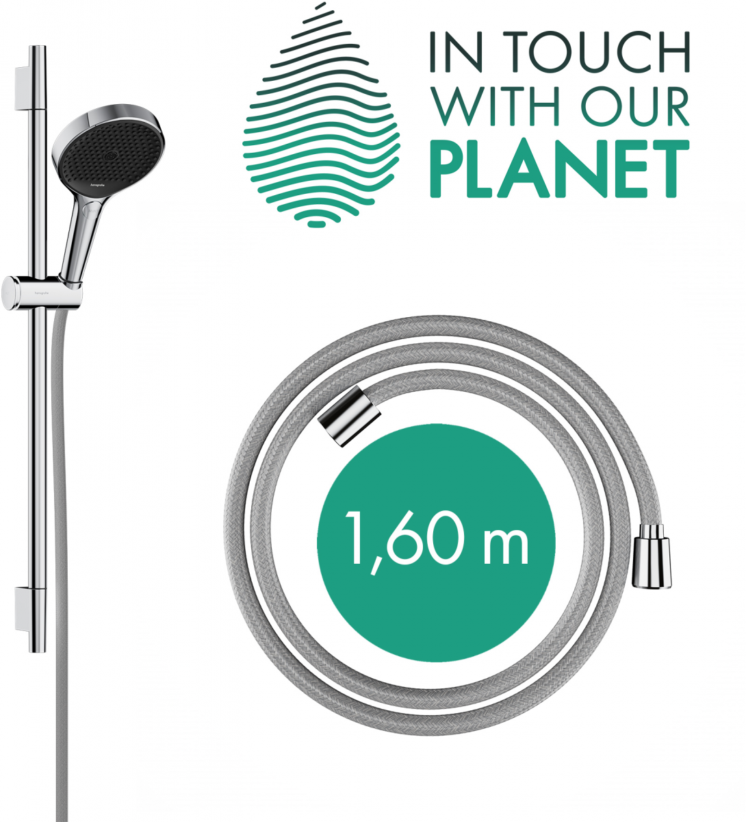 Rainfinity Zestaw prysznicowy 130 3jet Ecosmart z drazkiem s Puro 65 cm Pushslider i tekstylnym wezem prysznicowym Designflex 160 cm chrom