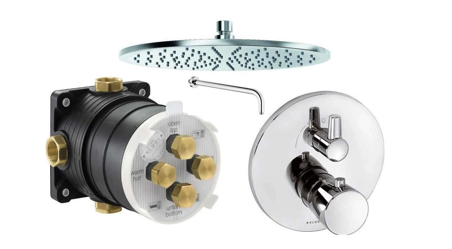 Podtynkowy termostatyczny komplet prysznicowy Kludi Balance z deszczownią 300.
