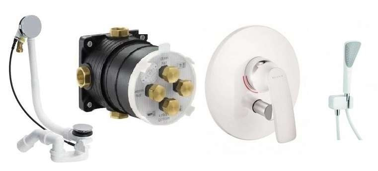 Kompletyny podtynkowy zestaw dzięki któremu napełnisz praktycznie każda wannę poprzez przelew Kludi Balance White. System ten to miks produktów marek Kludi i Viega dzięki którym będziesz mógł zrealizować swojej marzenie o niekonwencjonalnym sposobie napełniania wanny. Komplet w głównej mierze jest oparty na podzespołach firmy Kludi z serii Balance w wersji białej wraz z białym kompaktowym zestawem prysznicowym Fizz White. Jednym z najważniejszych elementów tego setu jest uniwersalny element podtynowy Kludi Flexxboxx do którego montuje sie mieszacz Balance White. Z kolei woda wpływa do wanny poprzez specjalny syfon Viegi.
