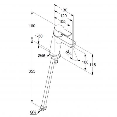 KLUDI PURE&EASY XL bateria umywalkowa bez zestawu odplyw.przeplyw 38 l/min 371980565WR4