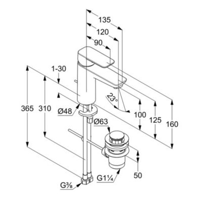 Kludi Pure&Style XL bateria umywalkowa 100 z zestawem odplywowym czarny mat 402903975