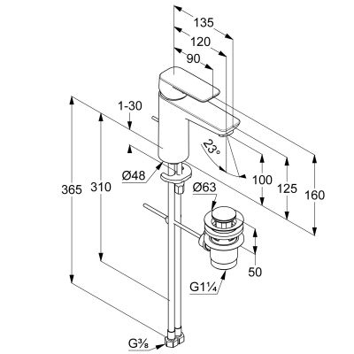 KLUDI PURE&STYLE XL jednouchwytowa bateria umywalkowa 100 z zestawem odplywowym przeplyw 38 l/min