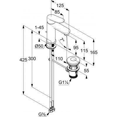 Kludi X1 bateria umywalkowa 100 z zestawem odplywowym chrom 322880575