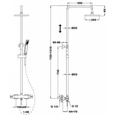 Opis produktu Teka Soller Dual Control zestaw prysznicowy ścienny termostatyczny z deszczownicą chrom 852780200