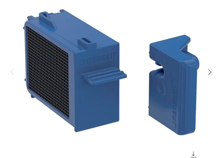 Skuteczny system usuwania zapachów z toalet Geberit obejmuje szufladę z filtrem. Szufladę można łatwo podłączyć do modułu Geberit DuoFresh bez użycia narzędzi.