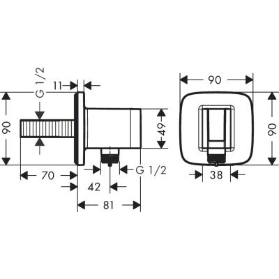 Opis produktu Hansgrohe FixFit Q przyłącze kątowe z uchwytem prysznicowym czarny chrom szczotkowany 26887340